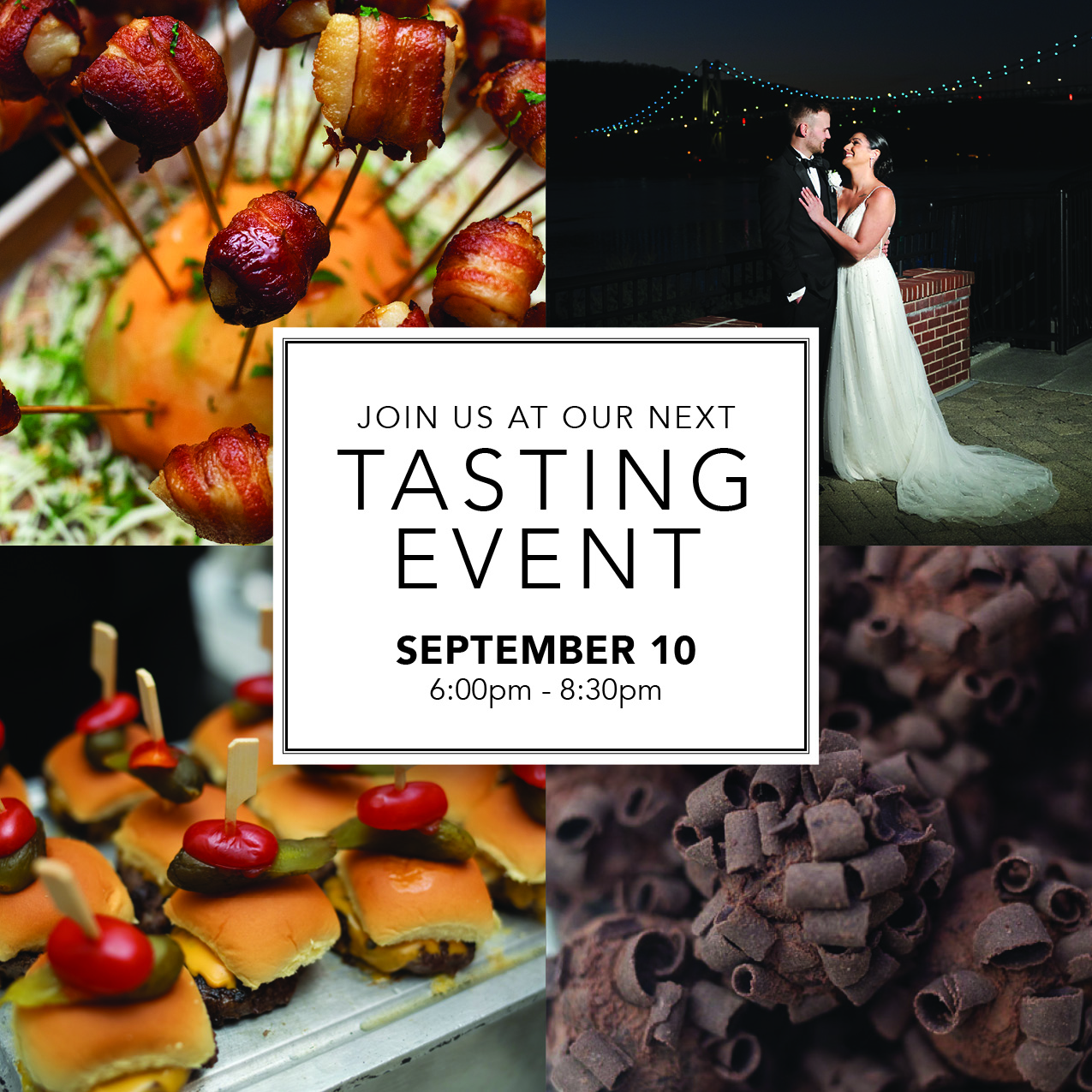 The Grandview 176 Rinaldi Boulevard, Poughkeepsie, NY, United StatesWe are excited to welcome you to the upcoming tasting at The Grandview! Our tastings are designed as a showcase-style event featuring multiple couples. Rather than a fully customized menu for each individual wedding, the evening highlights a curated selection of [...]